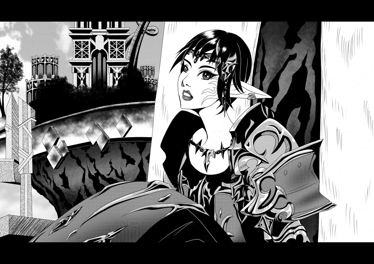 I. The basic line work of the piece.~~~• Flat Color/Grey-scale Shading - Check-In 4/Watermarked Piece • 3 Revisions Max